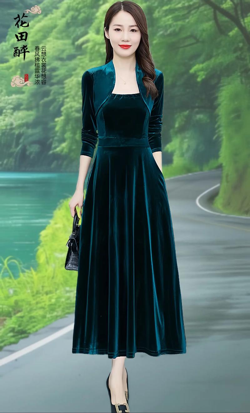 〖Four〗、复古绿色金丝绒一字肩礼服:亮丝质感,性感又不失优雅,适合小姐妹聚会穿着。简约日常设计 加肥加大码黑色金丝绒半身裙:适合胖mm穿着,春秋冬三季皆宜。一步裙包臀设计,高腰显瘦。黑色金丝绒开叉半身裙:小个子a字裙加绒加厚设计,适合春秋冬季穿着。