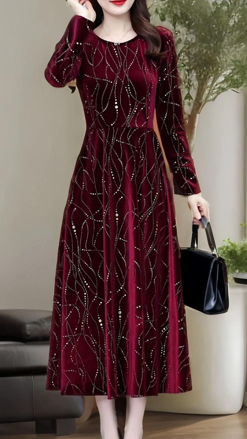 印花拼接款:这款裙子在金丝绒的基础上融入了印花或拼接元素,打破了单一色彩的沉闷感,增添了几分趣味性。独特的设计使得这款裙子更具个性,适合追求时尚潮流的女性。蕾丝拼接款:将柔软的金丝绒与精致的蕾丝相结合,既保留了金丝绒的舒适保暖特性,又增添了蕾丝的甜美气息。
