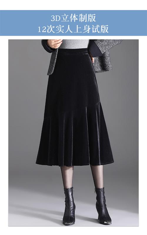 〖Three〗、金丝绒半身裙两种颜色相比,黑色更胜一筹。黑色金丝绒半身裙具有视觉收缩效果,让下半身看起来更加苗条;而杏色则没有这样的显瘦效果。
