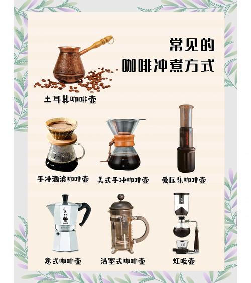 咖啡壶的种类及用法如下:咖啡壶种类 摩卡壶:摩卡壶是一种经典的意式咖啡壶,通常分为上下两部分。通过往下面壶体注水,把咖啡粉放中间部分,再将壶体旋紧后插上电源即可使用。