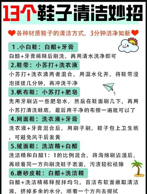 夏天洗鞋没味道,可以采用以下几种方法:使用小苏打清洁 小苏打是一种有效的异味去除剂。在清洁运动鞋时,可以撒一些小苏打在鞋内和鞋面上,用刷子轻轻刷洗,然后让鞋子放置一整夜。小苏打能够中和异味,使鞋子在第二天散发出清新的气味。牙膏清洁鞋底 对于橡胶鞋底的清洁,可以使用牙膏。将牙膏挤在旧牙刷上,然后刷洗鞋底。