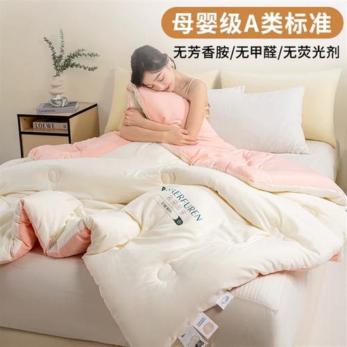 其他推荐选项新疆长绒棉被:100%棉花填充,纤维柔软细腻,透气吸湿,适合追求天然材质的用户;高性价比纤维被:如A类七孔纤维被,费用亲民且功能均衡,适合预算有限家庭。总结:若追求环保健康,优先选大豆纤维被;若需四季通用,蚕丝被子母被更实用;若注重保暖与轻便,白鹅毛羽毛被是优选。