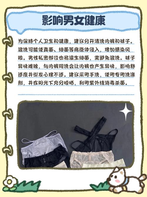 〖One〗、将袜子与内裤放在一块儿清洗存在诸多不良后果。 细菌交叉感染:脚部通常会滋生大量细菌,如真菌等,袜子上也就带有这些病菌。内裤直接接触私密部位,若与袜子一起洗,细菌会转移到内裤上,进而引发私密部位的感染,像霉菌性阴道炎、股癣等疾病都可能出现。