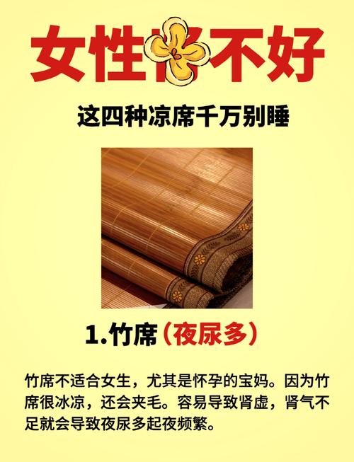 〖Two〗、女性在经期时不宜睡凉席。以下是具体原因:导致痛经:凉席属于冷凉物品,女性在经期使用会导致盆腔、子宫部位的血管收缩,血液循环受阻,从而引发痛经。可能引起宫寒:长期使用凉席,尤其是在生理期,容易引起宫寒,可能导致姨妈推迟等症状。