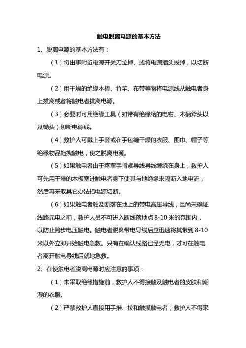 〖One〗、使触电者脱离电源的最有效方法需根据现场条件选取,优先采用切断电源的方式,具体可分为以下三种情况:拉闸断电若触电地点附近有电源开关或插销,立即拉开开关或拔下插头是最直接、安全的方法。此操作可瞬间切断电路,避免触电者持续受电击伤害。注意:操作前需确认自身未接触潮湿环境或金属物体,防止同时触电。