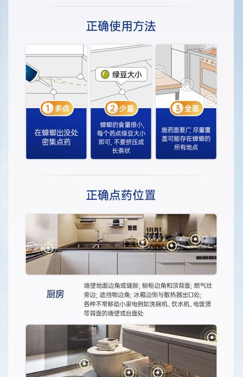 在使用这些杀虫剂前,确保关闭电源,打开窗户,确保空气流通。将杀虫剂均匀喷洒在蟑螂经常出没的地方,如排水口、角落等。对于隐藏的蟑螂,可以将杀虫剂滴入缝隙中。杀虫剂发挥效果需要时间,通常建议等待24小时后再进行清理。使用完杀虫剂后,可以使用吸尘器清理残留的蟑螂尸体,或用湿布擦拭。