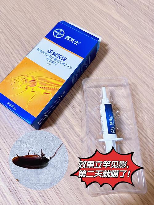 拜灭士胶饵 经拜耳的科研人员实验证明,当杀蟑药剂含量等于15%时,既可以满足致死条件,又可以延缓蟑螂死亡时间。 食用胶饵后的蟑螂回巢后会病发致死,周围的蟑螂会分食尸体然后团灭。一般3『1』0天到达连环灭杀效果,大部分蟑螂会死在巢穴内。胶饵内的药物会导致蟑螂死亡,对宠物和人类毒性不大。