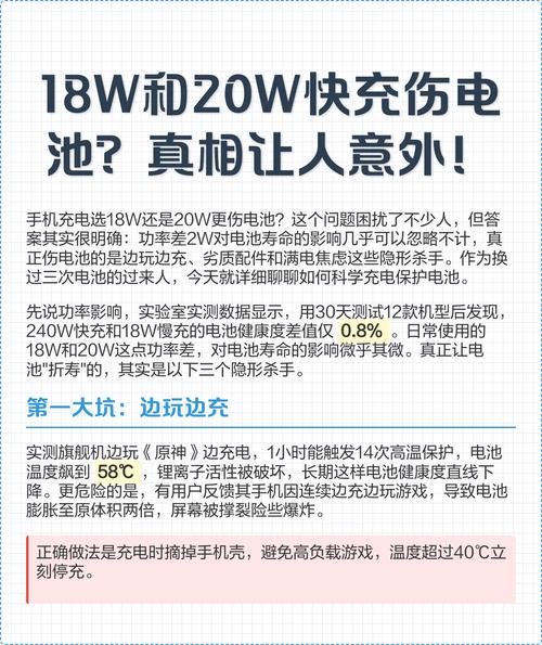 〖Three〗、iPhone 11使用18W或20W快充对电池的影响微乎其微。以下是具体分析: 电池寿命与充电功率无直接关系:锂电池的寿命主要取决于完全充放循环次数,而非充电功率。无论是慢充还是快充,都会经历锂电池活性物的永久性损耗,最终导致电池容量降低。