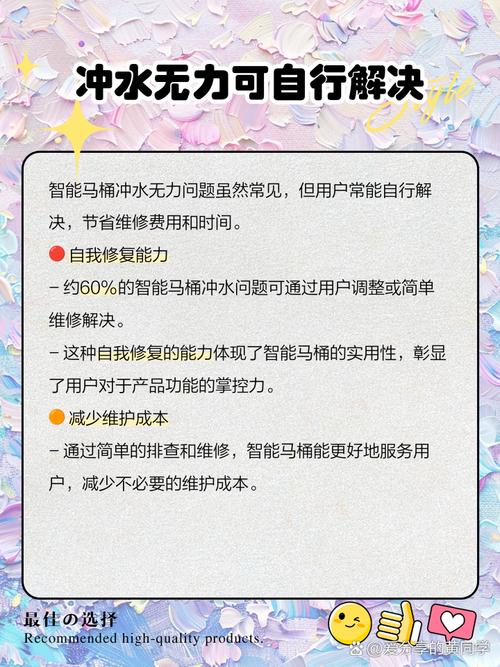 智能马桶通过温暖水流冲洗菊花,带来异样刺激与莫名爽感,这种新奇体验让人差点以为自己被掰弯了。具体分析如下:卫生需求与智能马桶的契合:在解决生理需求时,卫生是关键考量。传统马桶冲完后内壁细菌数量仍高达10万个,可能引发腹泻、妇科感染、痔疮等多种病症。