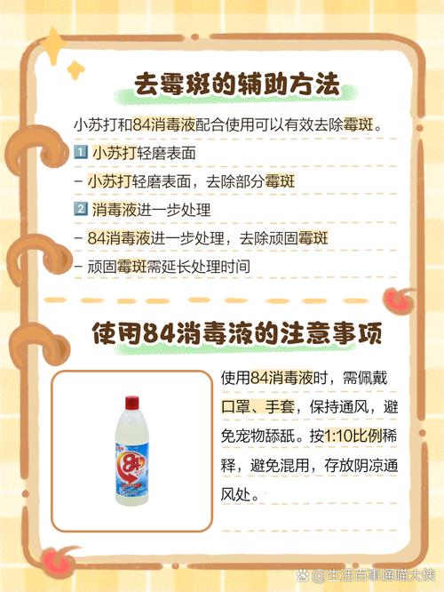 〖Four〗、综上所述,84消毒液可以有效去除墙面发霉的问题,但在使用过程中需要注意安全和正确操作。