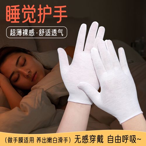 改善手部肤质:如果你的手感觉粗糙不细腻,睡眠手套可以帮助改善。在晚上涂抹较厚的护手霜后戴上手套睡觉,第二天你会发现手部皮肤变得更加滑嫩。选取轻便透气的手套:为了获得最佳的舒适度和效果,建议选取轻便、透气的手套,如纯棉白手套。