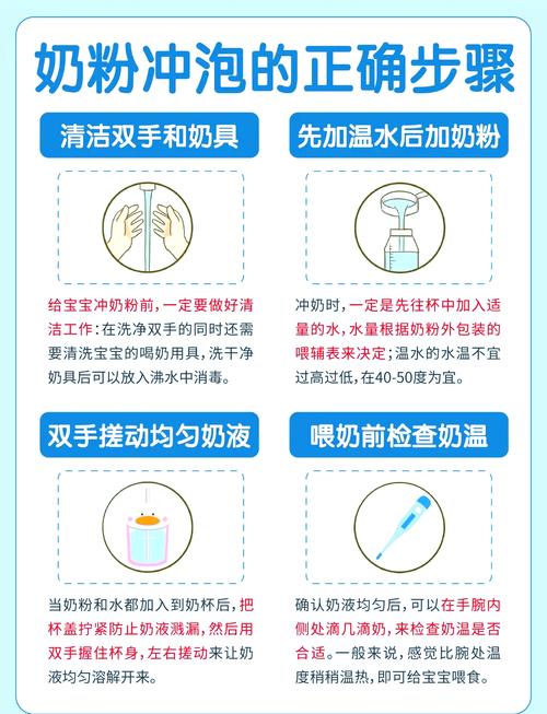 〖Two〗、消化问题:未溶解的奶粉可能引起宝宝腹泻,且营养吸收率降低。水温控制技巧:使用恒温水壶:设定50℃水温,冲泡后双手搓动奶瓶1分钟即可饮用,尤其适合夜间使用。手动调温:若无恒温水壶,可用开水兑凉白开,温度以略高于额头触感为宜(约40℃)。