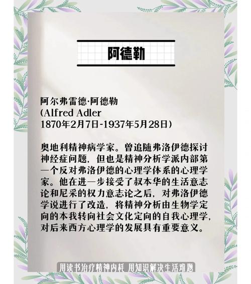 世界三大心理学巨头是:荣格,弗洛伊德,阿德勒。阿德勒的理论强调人人生来都是自卑的,但同时人也是具有创造性自我的。自卑在我们的生活中有时是好事,会让我们去追求卓越。正如那句话所说“没有人愿意做烂番茄”,我们每个人都想越来越好。这也正是阿德勒的代表作《自卑与超越》所反映的。