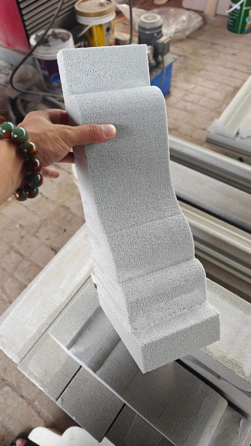 发泡陶瓷线条:主要利用陶土尾矿、石料等作为主要原料,采用先进的生产工艺和发泡技术,在1200°C高温下焙烧而成的高气孔率的闭孔陶瓷材料。EPS线条:由高阻燃B1级防火的聚苯板为主体,粘贴耐碱玻璃纤维网格布,并加以特殊的界面砂粘结复合而成的环保节能优质装饰建材产品。