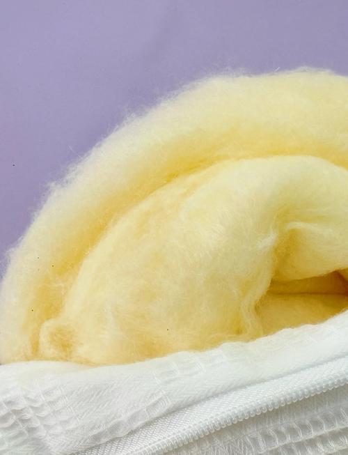 大豆纤维与聚酯纤维的混合比例在20%大豆纤维加80%聚酯纤维或30%大豆纤维加70%聚酯纤维时,是制作被子的最佳选取。 大豆纤维质地轻柔,触感糯滑,对皮肤非常友好。 然而,大豆纤维的回弹性较差,长期使用后难以恢复其原有的蓬松度,因此不适合单独作为填充材料。