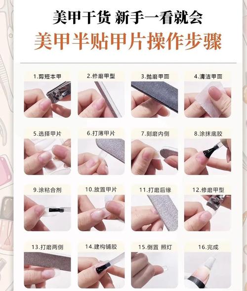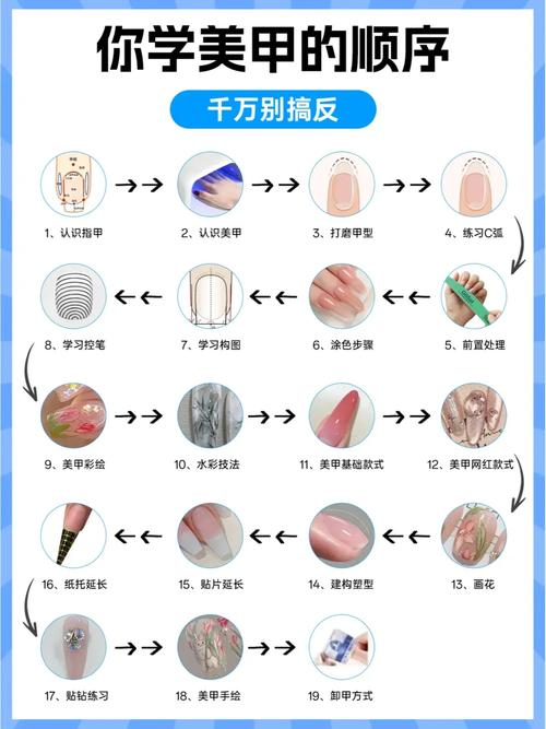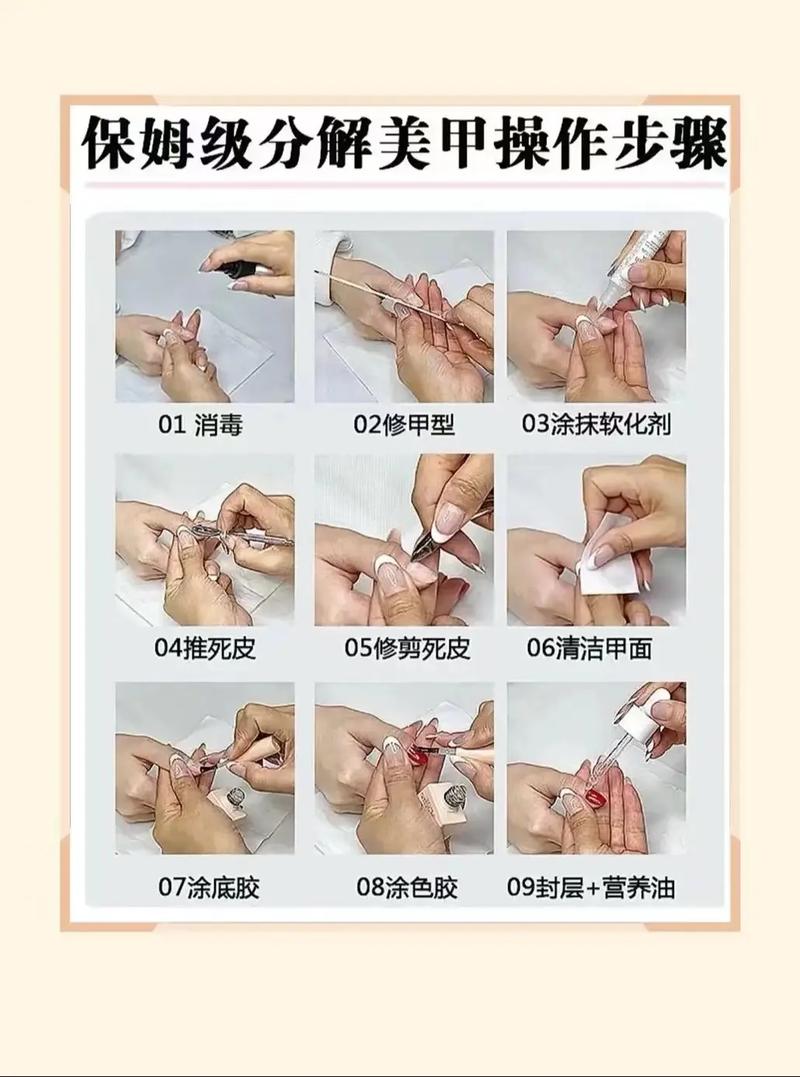 〖Five〗、自己在家做美甲既有趣又能省钱,以下是详细的步骤指南,适合新手和进阶爱好者:准备工作工具与材料清单 基础工具:指甲剪、锉刀(粗/细)、死皮推、死皮剪、抛光条、清洁刷。美甲产品:底胶、色胶(甲油胶)、封层(建议钢化封层更耐磨)、酒精棉片、卸甲水(备用)。