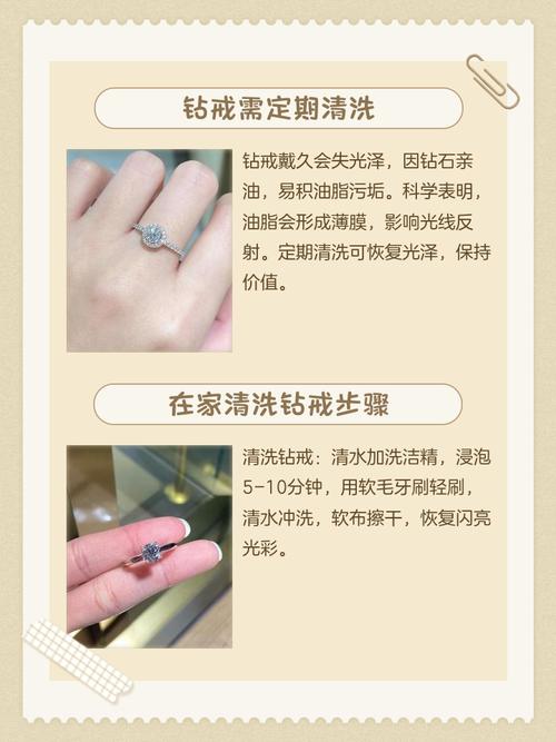 〖One〗、使用金刚石布或柔软的布擦拭钻戒表面。 将钻戒放在小盆子上,用流动的清水冲洗,可去除表面污渍。中度脏污处理 在小碗或茶杯中倒入温水,加入适量的中性洗涤剂(如洗洁精)。 将钻戒浸泡在混合液中,用软牙刷轻轻刷洗。 用干净的温水冲洗干净,然后用软布擦干。