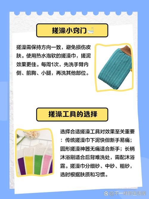 〖Six〗、可从准备、技巧、细节处理和注意事项几个方面着手,让搓澡更容易搓干净。准备阶段:先用37 - 40℃的温水冲洗或浸泡全身5 - 10分钟,软化角质层。工具选取上,普通肌肤选质地稍硬的搓澡巾;敏感肌肤用柔软搓澡手套或海绵;手肘、膝盖等重点部位搭配搓澡刷辅助。