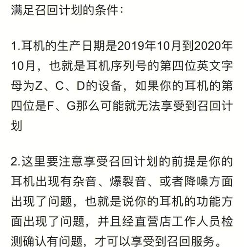 〖One〗、AirPods Pro召回计划主要针对的是存在某些制造缺陷的批次,这些缺陷可能导致耳机出现“一只耳机连不上”等问题。如果您的AirPods Pro出现了此类问题,并且购买日期符合召回计划的时间范围,那么您可能符合召回条件。