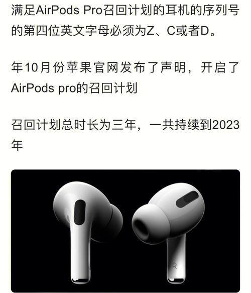 确认召回计划范围 AirPods Pro召回计划主要针对的是存在某些制造缺陷的批次,这些缺陷可能导致耳机出现“一只耳机连不上”等问题。如果您的AirPods Pro出现了此类问题,并且购买日期符合召回计划的时间范围,那么您可能符合召回条件。