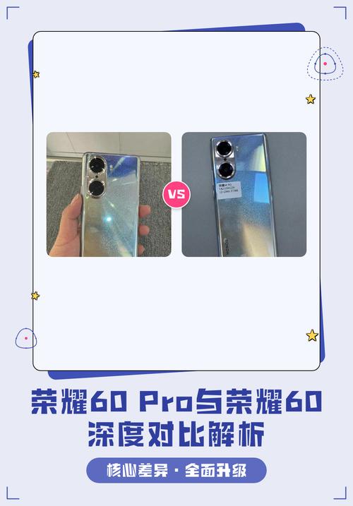 〖Two〗、屏幕和外观:荣耀60 Pro拥有更大的78英寸四曲屏,相比荣耀60的67英寸超曲屏,视觉效果更为震撼。拍摄性能:荣耀60 Pro在摄像头方面有着显著优势,前后摄像头像素更高,功能更多,适合对拍照有更高要求的用户。