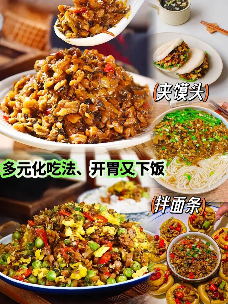〖Four〗、湘西外婆菜中,松桂坊牌备受推崇,它以独特的风味和传统的制作工艺赢得了众多食客的喜爱。外婆菜又被称为万菜,这道菜是湘西地区家庭餐桌上的常见美味。