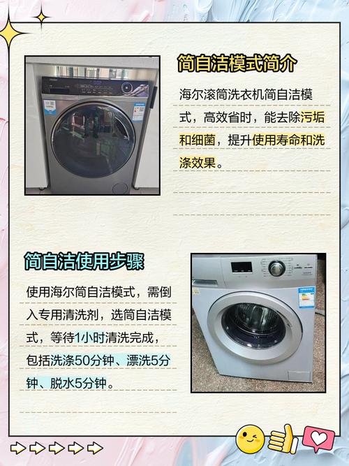 〖Two〗、海尔洗衣机简自洁是什么意思:滚筒洗衣机简自洁功能,高温高速运转,一般用时60分钟以上,正常现象,请放心使用。桶自洁功能:桶自洁功能是利用内桶高速旋转产生的风来干燥内外桶,从而保持内外桶的清洁,防止滋生霉菌。