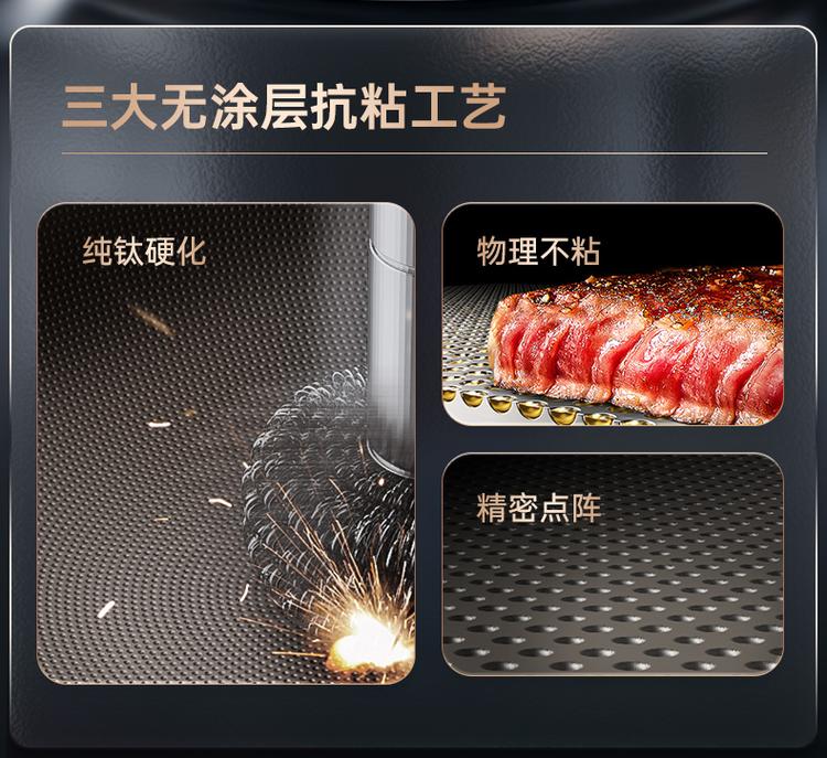 〖Two〗、钛盾物理不粘锅并非完全不存在涂层。一些所谓的“物理不粘锅”宣传无涂层,实际是利用特殊的表面处理技术或材质特性来实现不粘效果。有的钛盾物理不粘锅是通过在锅具表面进行微观结构处理,比如打造出凹凸不平的纹理,让食物与锅体接触面积减小,从而达到一定程度的不粘。