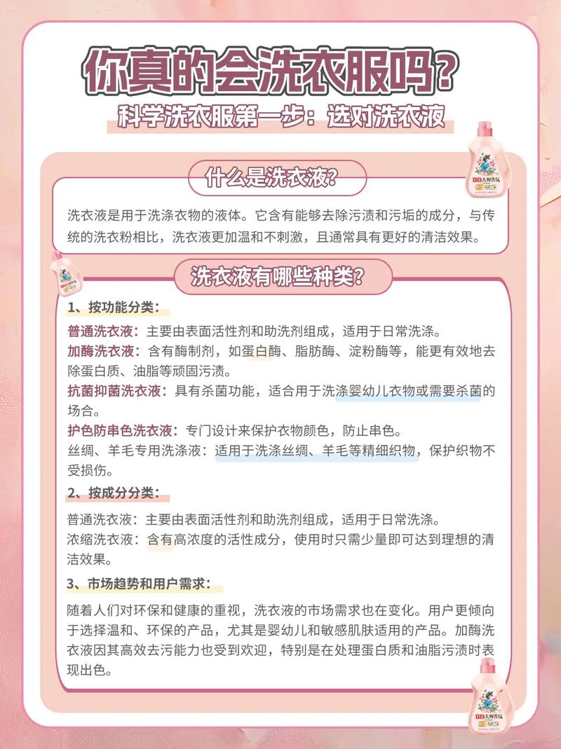 〖Three〗、鉴别洗衣液的好坏,主要看其清洁能力、温和度、成分安全性和使用体验。清洁能力是衡量洗衣液好坏的最基本标准。好的洗衣液应该能够轻松去除衣物上的各种污渍,包括油渍、血渍、草渍等常见污渍。这要求洗衣液中含有高效的表面活性剂,能够有效分解并悬浮污渍,使其易于被洗涤水冲走。