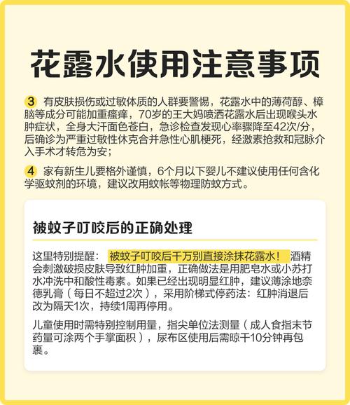 可以睡觉,但需保证通风并控制用量。驱蚊花露水喷在室内后是否能立即睡觉,主要看成分和喷洒方式。市场上多数驱蚊花露水含酒精、避蚊胺(DEET)或拟除虫菊酯等成分,少量喷洒且在通风环境下通常不会影响健康。但需注意空间密闭性——若门窗紧闭且喷洒过量,气味过浓可能引发呼吸道不适或头晕。