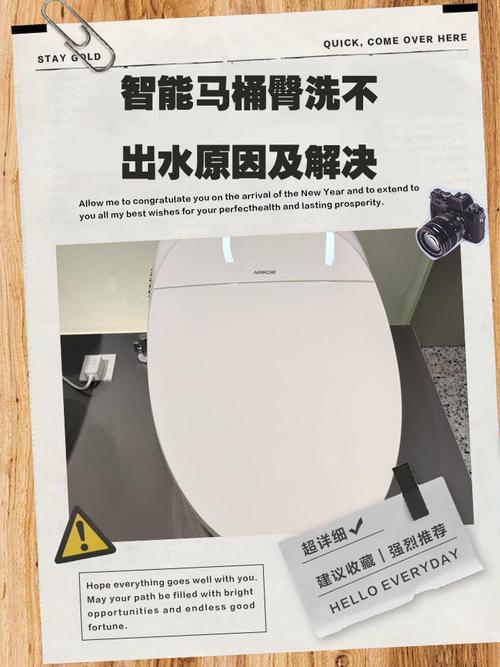 〖Six〗、智能马桶臀洗没反应的原因及解决办法主要包括以下几点:水压问题:检查水压是否足够,水压过小可能导致臀洗功能无法正常使用。喷嘴堵塞:观察臀洗喷嘴是否堵塞,如果堵塞,建议找专业人士进行清理,避免自行清理造成损坏。供水问题:检查供水管道是否畅通,如果水管出现问题,建议前往维修点进行维修。