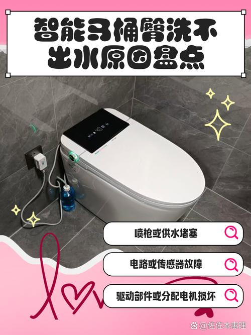 智能马桶臀洗不出水的原因及解决方法如下:原因:喷头堵塞:智能马桶盖使用久了,可能会因为水质原因造成喷头堵塞,导致无法喷水。水管问题:水管可能因长期使用或水质问题而损坏或堵塞,影响水的正常喷出。电机或霍尔板故障:如果马桶的状态指示灯正常,但不工作,可能是放水电机或霍尔板出现故障。