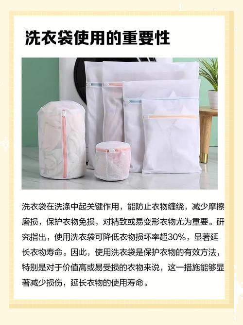 〖Six〗、洗衣袋的使用方法主要包括以下步骤:确定洗衣袋的装载量:8分满原则:每次使用洗衣袋时,确保袋内衣物达到8分满即可。放太多会降低清洁效果,放太少则会减弱对衣物的保护作用。分类装载:专用洗衣袋洗内衣:对于内衣等精细衣物,建议使用专用洗衣袋。将罩杯对折后放入,一袋内放置23件为宜。