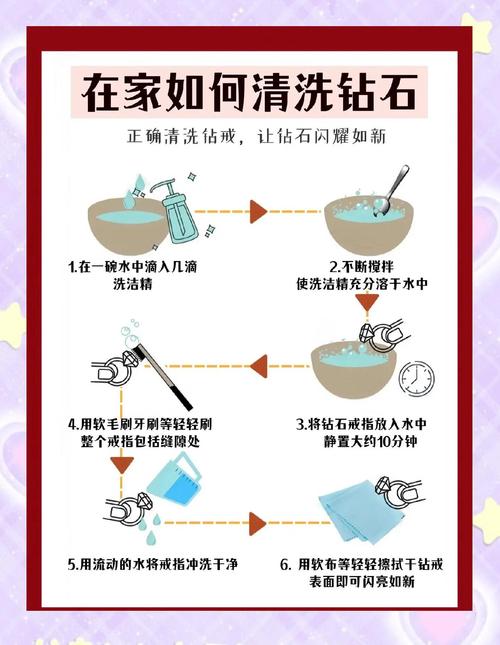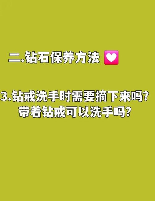 〖Six〗、普通情况:如果你只是用清水简单冲洗手部,那么钻戒可以不用取下。但务必留心,避免水流冲走你的戒指。 使用化学清洁剂时:如果你使用洗手液、香皂等含有化学成分的清洁剂来洗手,建议此时将钻戒取下。这些清洁剂中的成分可能会导致戒指的戒托变色或褪色,同时也会使钻石的光泽度下降。