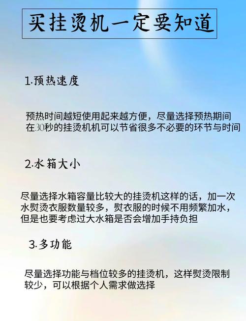 〖Six〗、挂烫机的档位适中为好,家用的挂烫机基本上四五档就可以了。以下是具体分析:档位适中更实用:挂烫机的档位不宜过多,也不宜过少。档位过多可能会导致操作复杂,不易上手;而档位过少则可能无法满足不同材质衣物的熨烫需求。因此,四五档的挂烫机既能满足日常需求,又不会过于复杂。