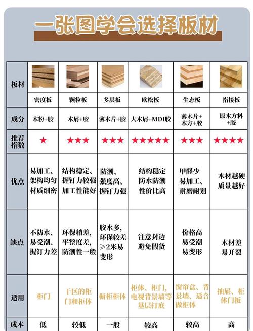 〖Two〗、缺点:质地软:承重力较弱,易受压变形。封边易脱落:不粘胶封边技术差时,边缘易开裂。质量差异大:市场产品参差不齐,需谨慎选取品牌。适用场景:临时家具或低承重柜体,不推荐长期使用。 颗粒板(刨花板)优点:性价比高:费用实惠,是全屋定制门店常用板材。表面平整:方便贴面或喷漆,外观多样。