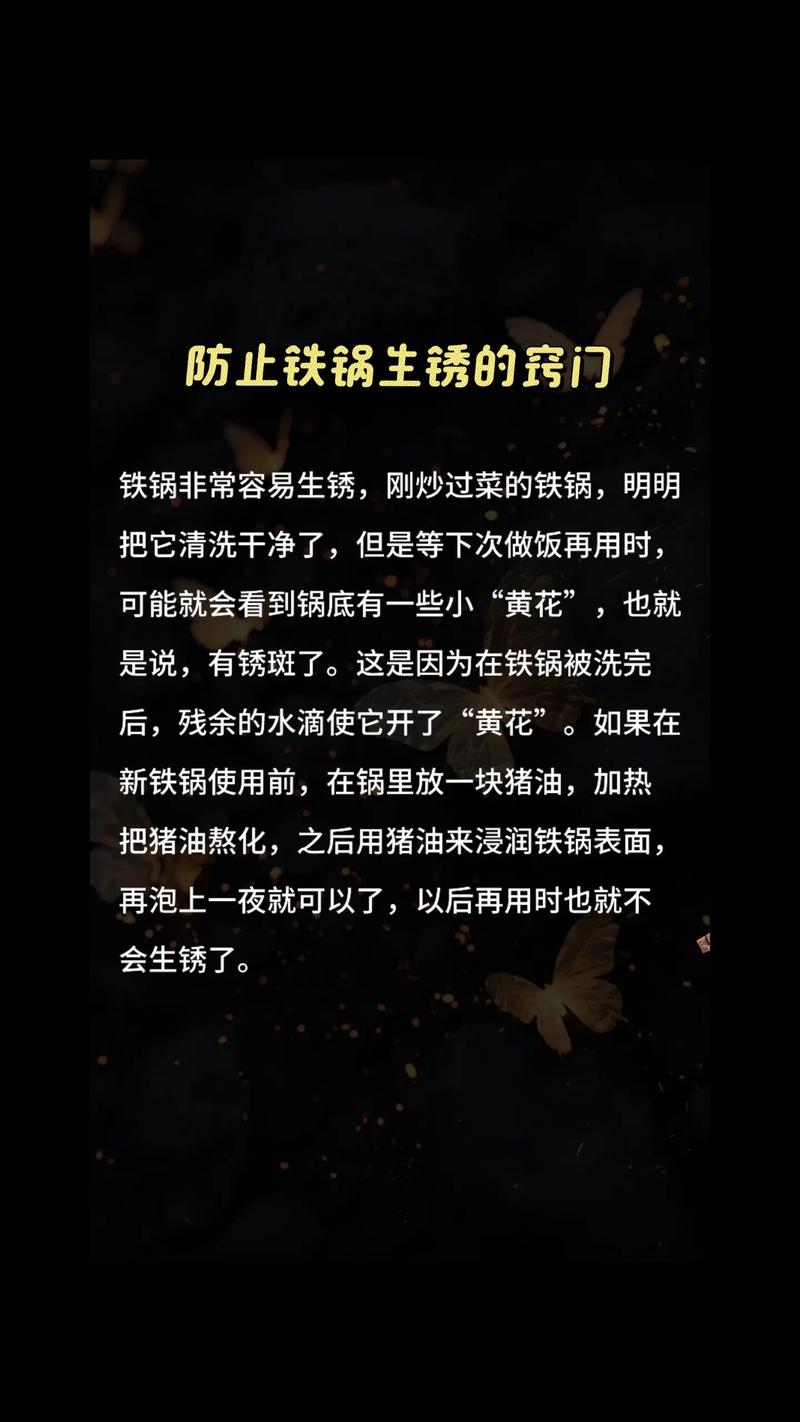 铁锅生锈可以用食醋或猪油擦拭,还可以用植物油加热后浸泡,这些方法都可以防止铁锅生锈。除此之外,保持铁锅干燥、避免使用尖锐厨具刮擦也可以防止铁锅生锈。在烹饪结束后,比较好将铁锅洗净擦干,涂抹少许油防止氧化。
