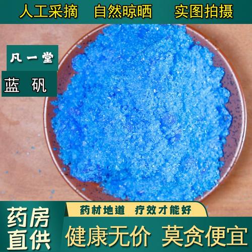 胆矾,又称石矾、兰矾或鸭嘴绿胆矾,是一种由硫化铜矿氧化分解形成或人工制成的含水硫酸铜。其晶体呈现不规则的块状结晶体,大小不一,颜色为深蓝或淡蓝,有时带有浅绿。在空气中容易风化,质地脆易碎,硬度较低,约为5,比重在1~3之间,无臭,味道酸涩。