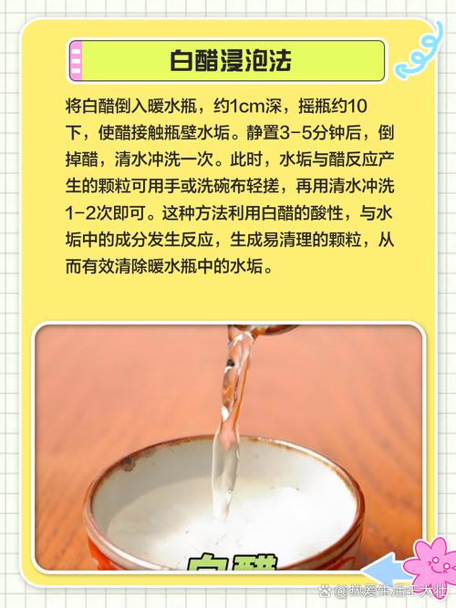 〖Four〗、暖水瓶塑料味的去除方法主要有以下几种:使用牛奶 将暖水瓶用清洁剂清洗干净后,倒入两勺新鲜的牛奶,关闭盖子并充分摇动,确保牛奶与暖水瓶的每个角落都充分接触。保持这个状态约1分钟后,将牛奶倒出,再倒入热水,让水在暖水瓶中静置数小时。这样,牛奶中的成分就能有效吸附并去除暖水瓶中的塑料味。