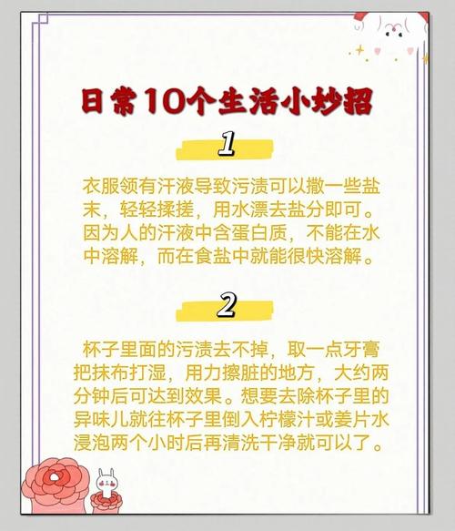 以下是10个超实用的生活小窍门:塑料瓶盖打不开:将瓶盖放入冰箱冷冻室,低温会使瓶盖材料收缩,降低摩擦力,冷冻后即可轻松拧开。室内自然增香:将干花瓣混合后装入匣子,置于起居室或餐厅。花瓣中的芳香物质缓慢释放,可替代化学香薰,安全且环保。