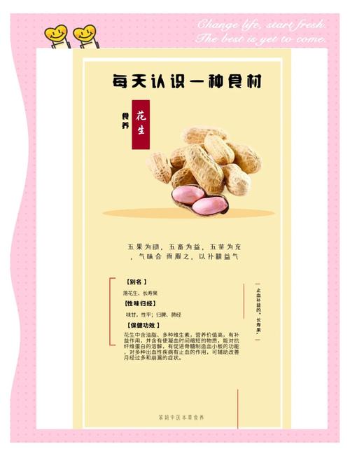 〖Two〗、默默无闻:花生不像其他水果那样引人注目,而是静静地生长在地下,等待人们去发现和收获,这象征着默默无闻的精神。无私奉献:花生虽然外表不起眼,但它却具有极高的营养价值,可以为人们提供丰富的营养,这种默默奉献而不求回报的精神,是花生所具备的又一品质。