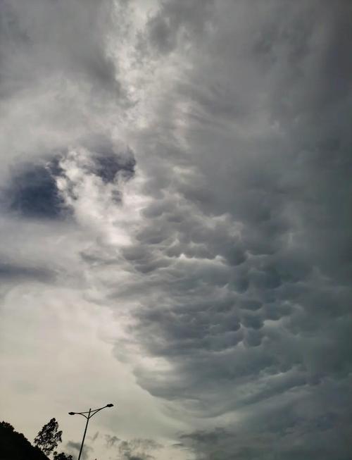 〖Four〗、乳状云并非特定天气的直接预兆。以下是关于乳状云与天气关系的详细解释:乳状云与雷暴活动的关系:乳状云通常在雷暴活动之后才出现,而非雷暴或恶劣天气的直接预兆。乳状云的形成机制:乳状云的形成是由于积雨云下方冷空气从下沉气流中下沉,遇到上升气流中较暖的空气,形成了一个个独特的乳状形状。