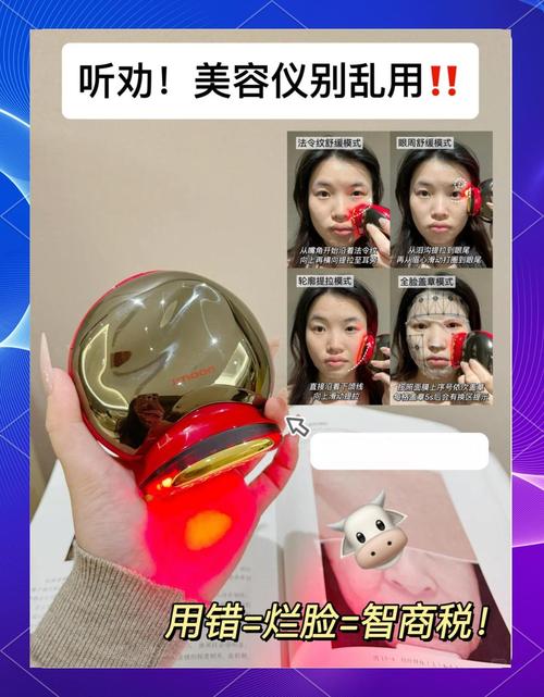 〖One〗、离子导入类:将护肤品涂抹在仪器金属触头上,通过电流促进吸收。特殊类型:如金色胶原炮美容仪,可搭配配套面膜或凝胶使用。使用面膜时需平整贴合面部,仪器以“盖章模式”依次按压左脸、右脸、额头,每格停留至滴滴提示音后换区。 调节档位初次使用从最低档开始,逐步测试皮肤耐受度。