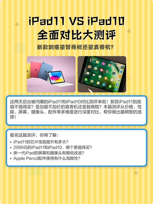 iPad 10代和11代在外观设计上可能有所不同,包括边框宽度、颜色选项等。通常,新款iPad会采用更现代的设计语言,如更窄的边框和更多的颜色选取。