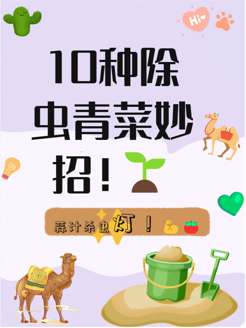 利用伴生植物治虫:通过将两种植物间作种植,可以有效驱虫。例如,青椒与大蒜间作,番茄与甘蓝套种,葱头与胡萝卜间作等,这些组合都有驱虫效果。 使用自然材料治虫:- 草木灰液治虫:将草木灰10千克与水50千克混合,浸泡24小时后取滤液喷洒,可有效防治蚜虫和黄守虫。