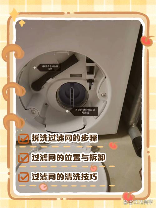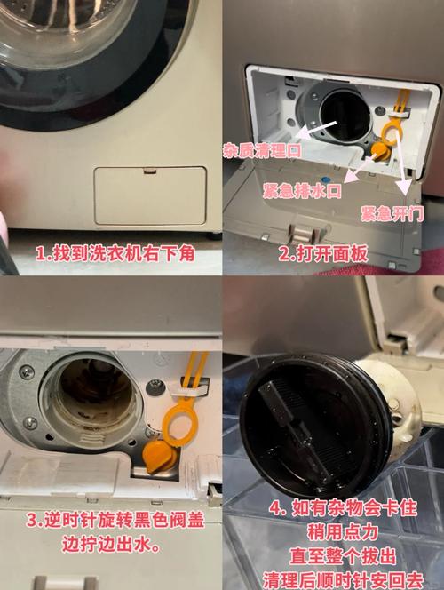 关闭电源:首先,确保洗衣机已经断电,并拔掉电源插头以确保安全 。打开前面板:在洗衣机顶部找到一个小的开关或按钮,按下即可打开前面板 。定位过滤网抽屉:在打开的前面板下方,可以看到一个类似于小门的结构,这就是过滤网所在的位置 。