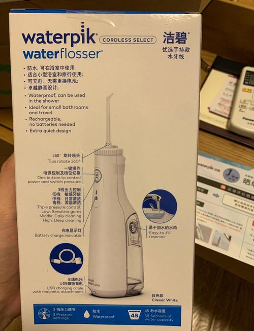 〖Four〗、便携式水牙线较好的品牌包括洁碧(Waterpik)、博皓(prooral)、松下(Panasonic)、素士(SOOCAS)和飞利浦(PHILIPS)。洁碧(Waterpik):其WP『6』60EC型号体积小巧但功能强大,冲牙效果显著,能有效缓解牙龈发炎出血等问题。其设计人性化,如常用喷头收纳格和水箱容量较大,适合家庭使用。