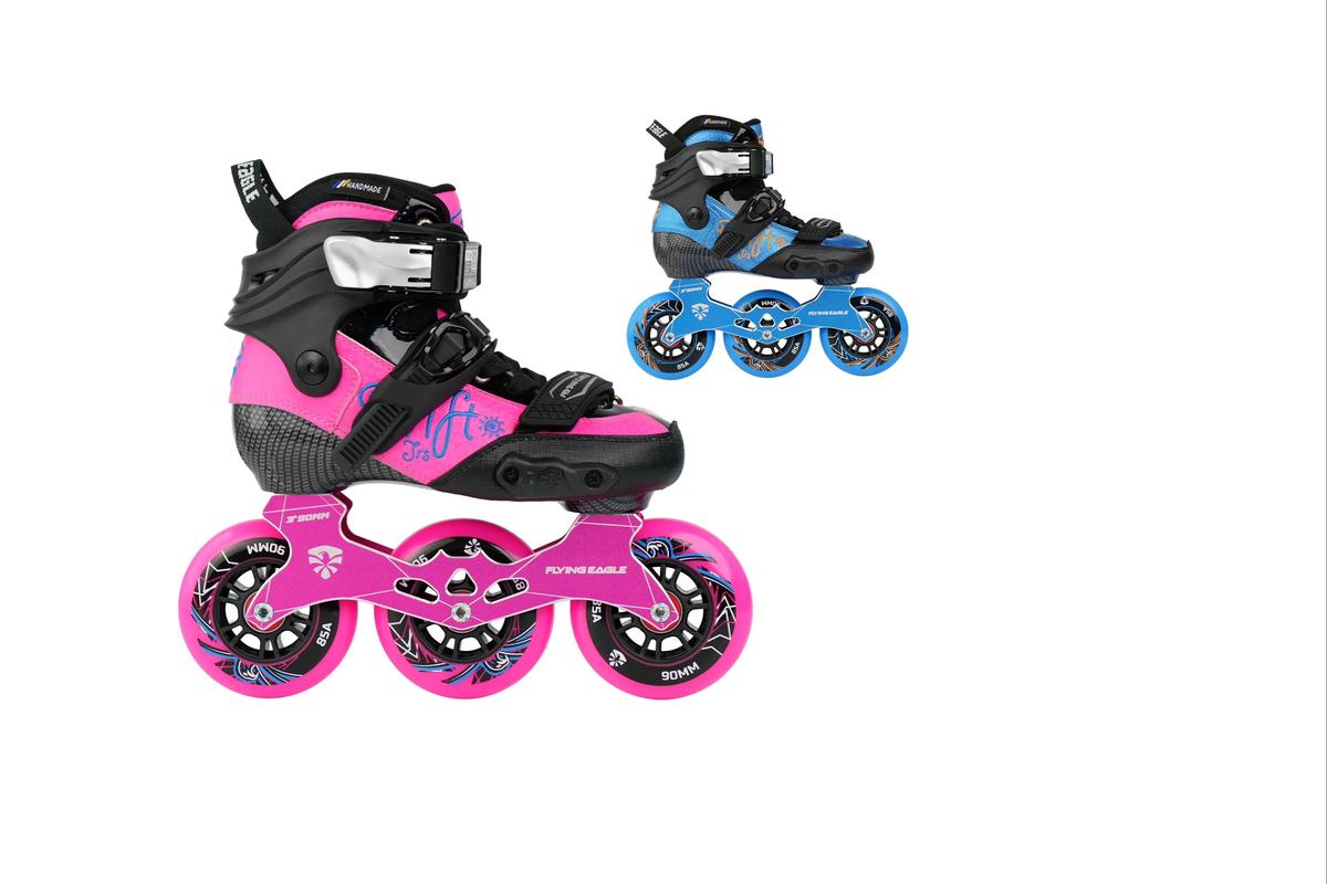 〖Five〗、三轮速滑鞋:更适合初学者。其设计有助于初学者更容易掌握平衡,从而更快速地适应溜冰运动。四轮速滑鞋:结构相对复杂,对于新手来说,可能需要更长的时间来熟悉和掌握。应用场景:三轮速滑鞋:虽然适用于初学者学习,但在应用场景上可能相对有限,主要适用于初学者练习和简单的溜冰活动。