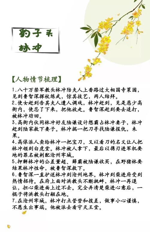 〖One〗、《水浒传》主要描写的是北宋末年,以宋江为首的一百零八条好汉在山东梁山泊聚义的故事。起因:民不聊生,梁山好汉反抗欺压。经过:在水泊梁山壮大,对抗朝廷。结果:受宋朝招安,以及受招安后为宋朝征战,最后消亡。