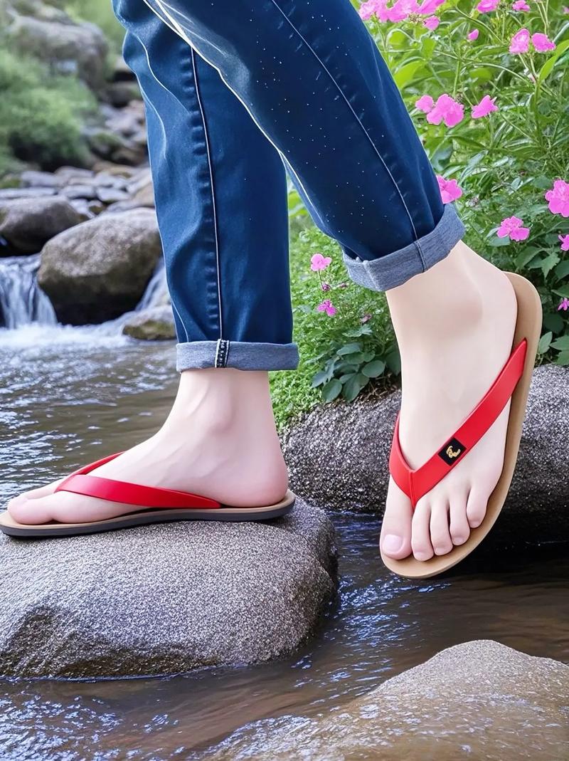 另外,穿着人字拖行走稳定性较差,增加了扭伤脚踝的风险,在行走或运动过程中可能因意外而受伤。 益处:人字拖的设计使得脚部大部分暴露在空气中,空气能够自由流通,能有效减少脚部出汗和闷热感,保持脚部干爽,降低因脚部潮湿滋生细菌和产生异味的几率。
